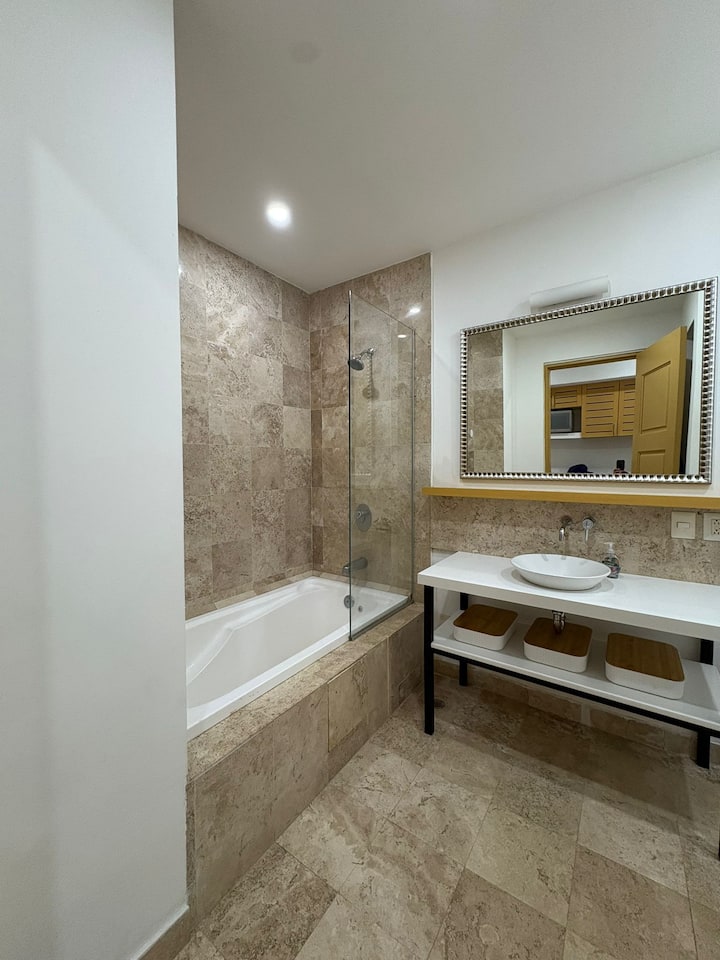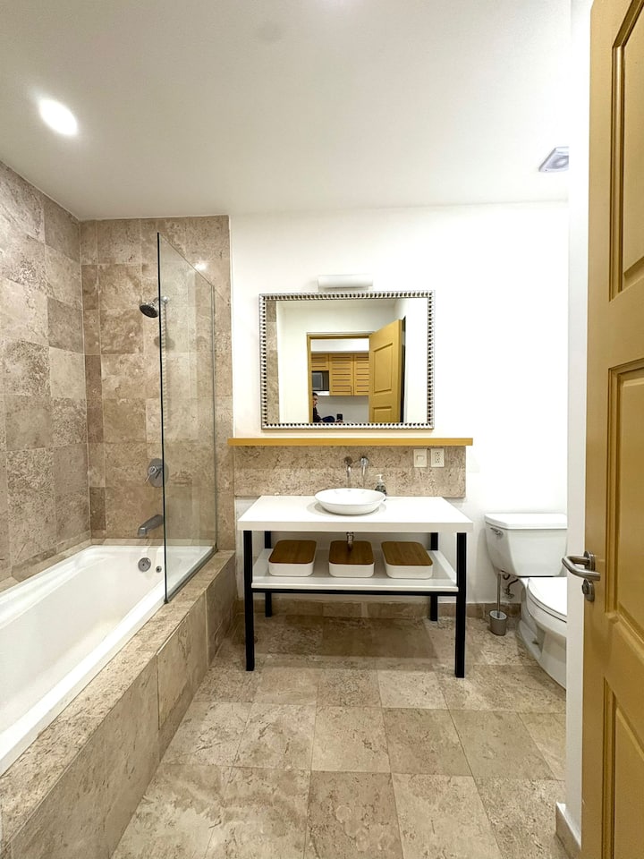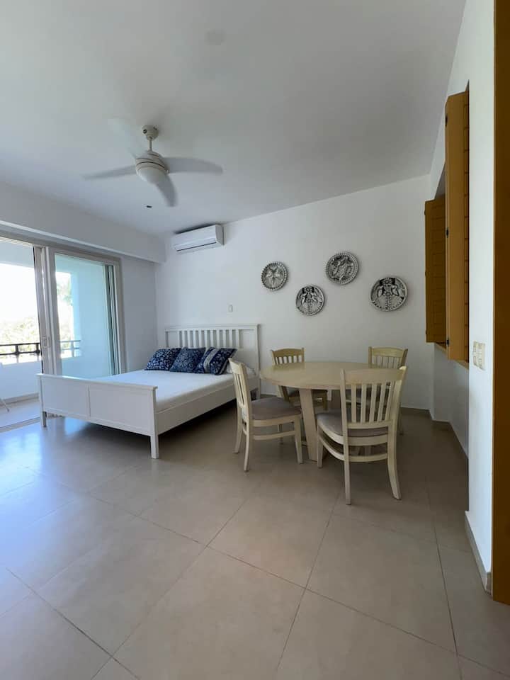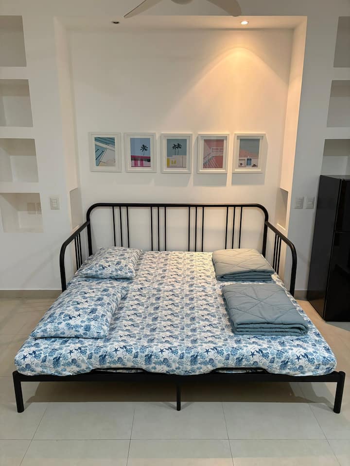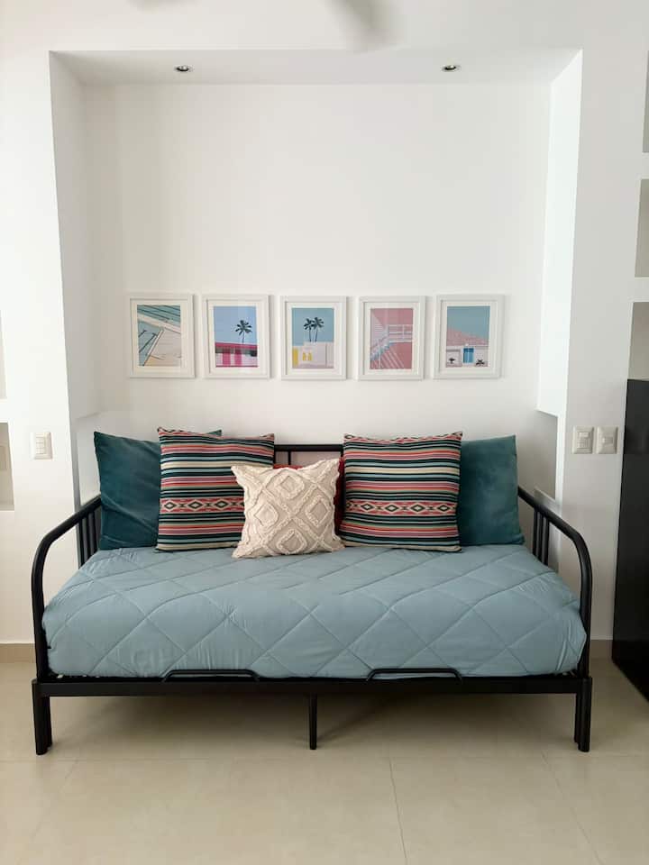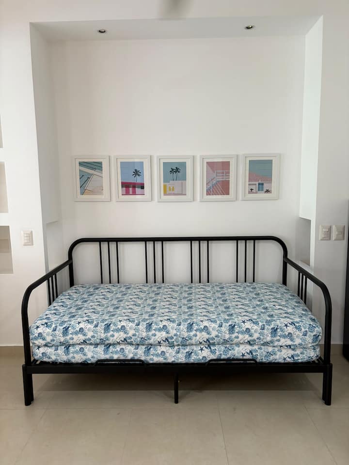 Sleeps 2 adults and 2 kids comfortably. King bed with a balcony view and Roku internet TV, additional king daybed that converts to a sofa for daytime use. Kitchen includes 2 fridges, Mini oven and air frier, induction cooktop, microwave, coffee maker, and all the essentials. Cool off with two brand new mini-split A/C units, and unwind with a cool drink on the terrace. Stay connected with high-speed Wi-Fi internet provided by Total Play.
