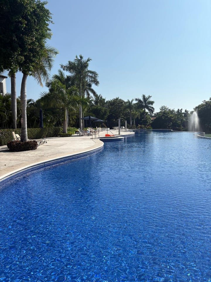 Relax at the peaceful oasis Condominios Taheima nestled within El Tigre Golf Course in Nuevo Vallarta. Condo Sole is a fresh & clean penthouse studio. The unit overlooks lush tropical grounds, and two of the largest pools in El Tigre. Enjoy ‘The Palapa’ a great on site restaurant, which serves the complex exclusively. A king-size bed, and king size day bed, a full bathroom, and an additional half bath, a fully equipped kitchen, and plenty of extras (Bikes, sports equipment, pool toys etc) Condo Sole is everything you need!